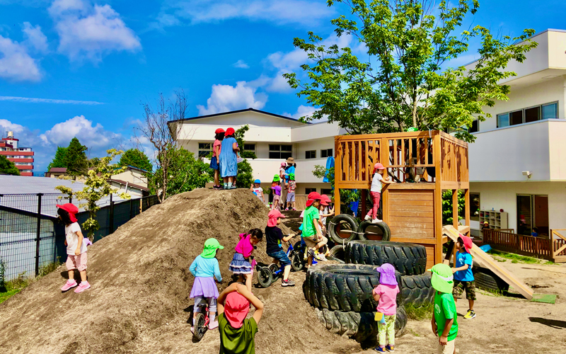 園庭にはリンゴやスモモなど実がなる木も豊富です。